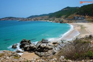 There are several beaches you should not miss and must visit on the route, and Lo Dieu Beach is one of the first ones. This location has an odd appeal because of the unspoiled golden sand beach that wraps around the cliffs. When you stay in a high position to look down, the place resembles a massive bow; it leans against the cliff, faces the sea, and has a field in the center. The Lo Dieu reefs continue to feature immaculate, unbelievably clean, and stunning scenery from a distance. The rocks in this area have taken on various fascinating and artistic forms due to natural creation and abrasion.