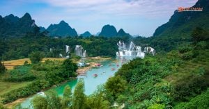 Then, you will soon reach Ban Gioc Waterfall, usually regarded as the natural border between Vietnam and China. Take your time to admire the spectacular natural formations of cascading waterfalls, cliffs, and unique-shaped rocks.