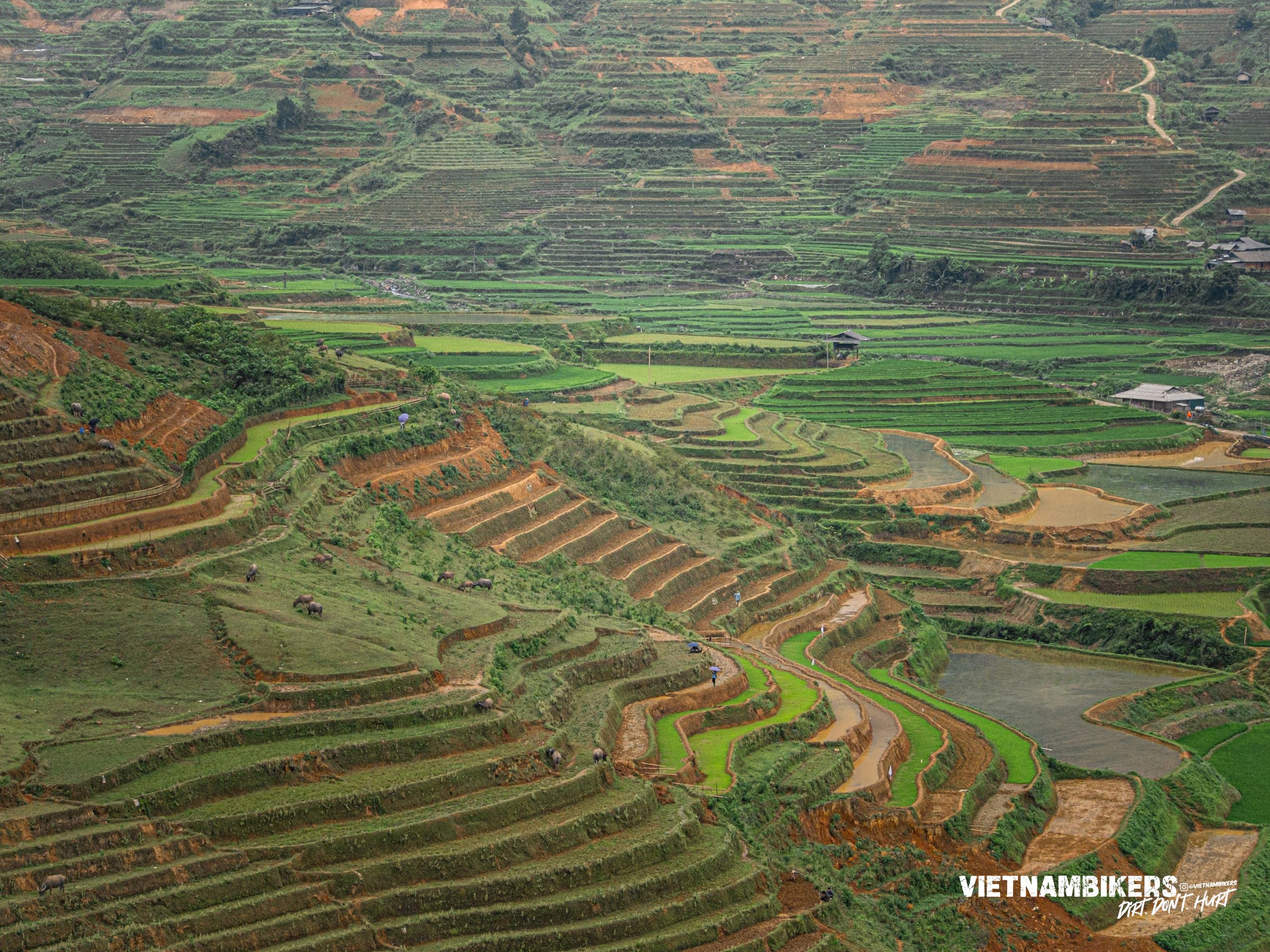 Khau Pha pass will get you through must-visit places such as Mu Cang Chai, La Pan Tan, Che Cu Nha, and Tu Le. After a short stop exploring the beautiful La Pan Tan's Mountaintop, the team will head to Mu Chang Chai to have lunch there.