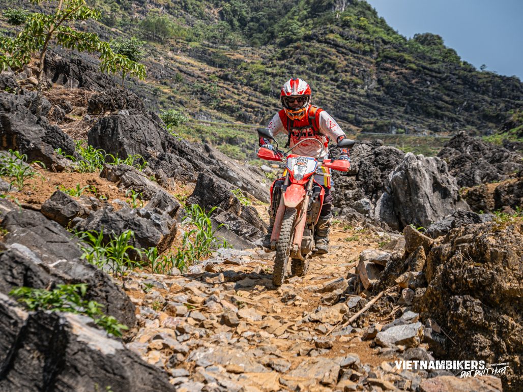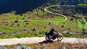 In addition to mountain roads that lead to a series of breathtaking mountain peaks, Ha Giang is also an area with rocky trails that wind through valleys surrounded by mountains.