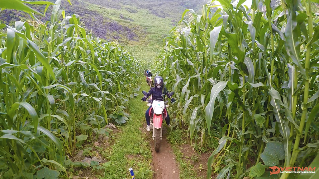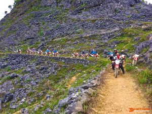 Welcome to Dong Van plateau. On the 5th day, you will ride in the mountains and pass many dangerous slippery tracks. On the road, you have a once-in-a-lifetime chance to behold the small houses of ethnic people like H'mong and Lo Lo.