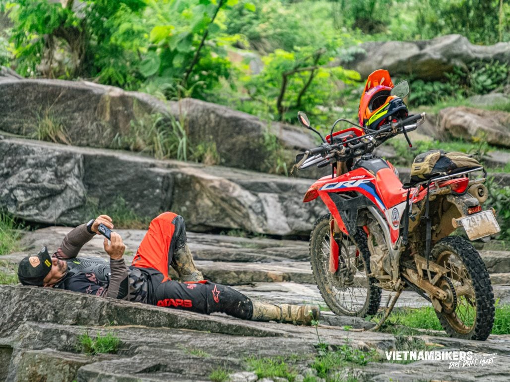 We camped at the most beautiful place in Cao Bang - Ban Gioc waterfall. The clear and cool water boosted our energy after a long ride. Without hesitation, we jumped down and took a dip. After lunch, we walked around and took unique photos in front of the strong falls.