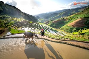 In the direction of turning onto Highway 32, we visited Mam Xoi hill and Mu Cang Chai terraced fields. Take it slow to capture the lush valley between the mountains and the clear blue sky. In the end, we stopped at Than Uyen town, Lai Chau province. Today is one of the most epic motorbike touring in Vietnam.