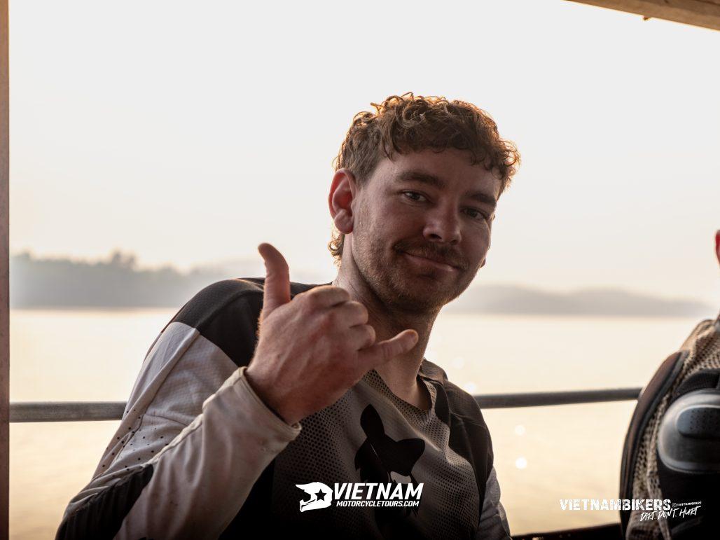 We motorbike down from Sapa to the city of Lao Cai and stop for a coffee by the Nam Thi River, which is the border between Vietnam and China. Afterwards, we head to Vu Linh - a vilage of Dao ethnic minority. This village lies by the side of Thac Ba lake, the biggest man-made lake in Vietnam.