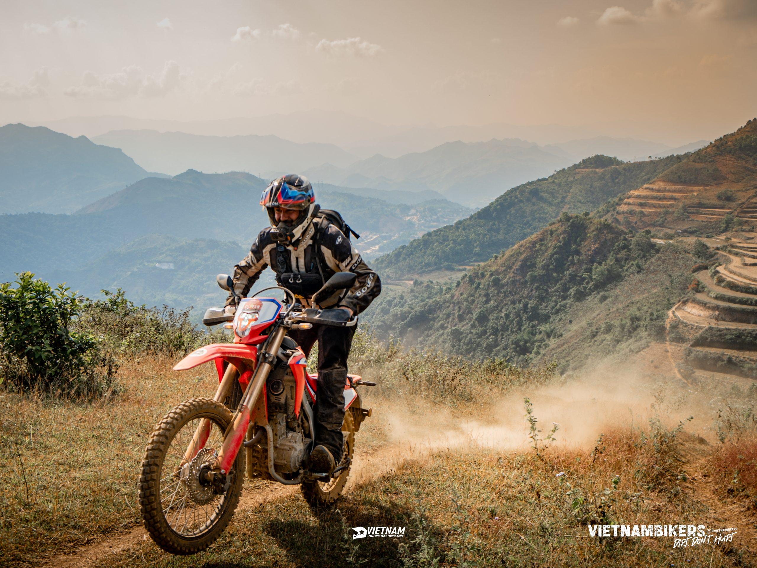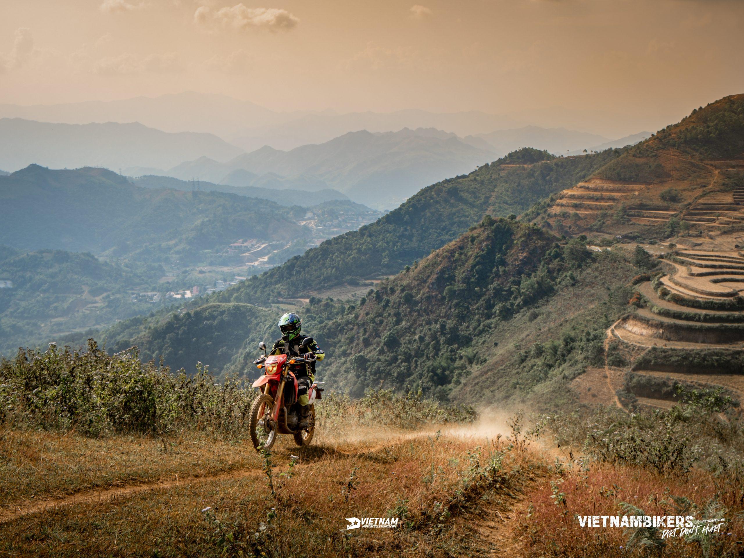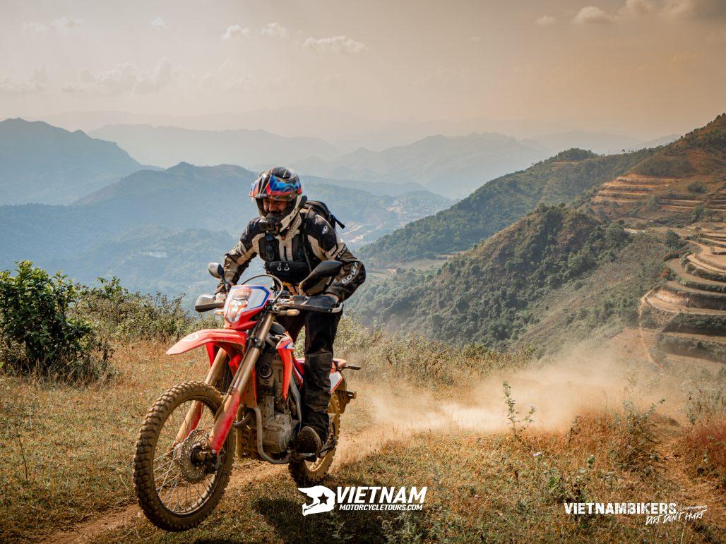 After lunch, our ride goes on through Mu Cang Chai massif, which is of almost the same height as the well-known Fansipan. At the highest point, one of the most oustanding landscapes in the North of Vietnam will appear in front of your eyes. This ride is also quite challenging and requires skills and attention, but It is a fulfilling experience to any rider.