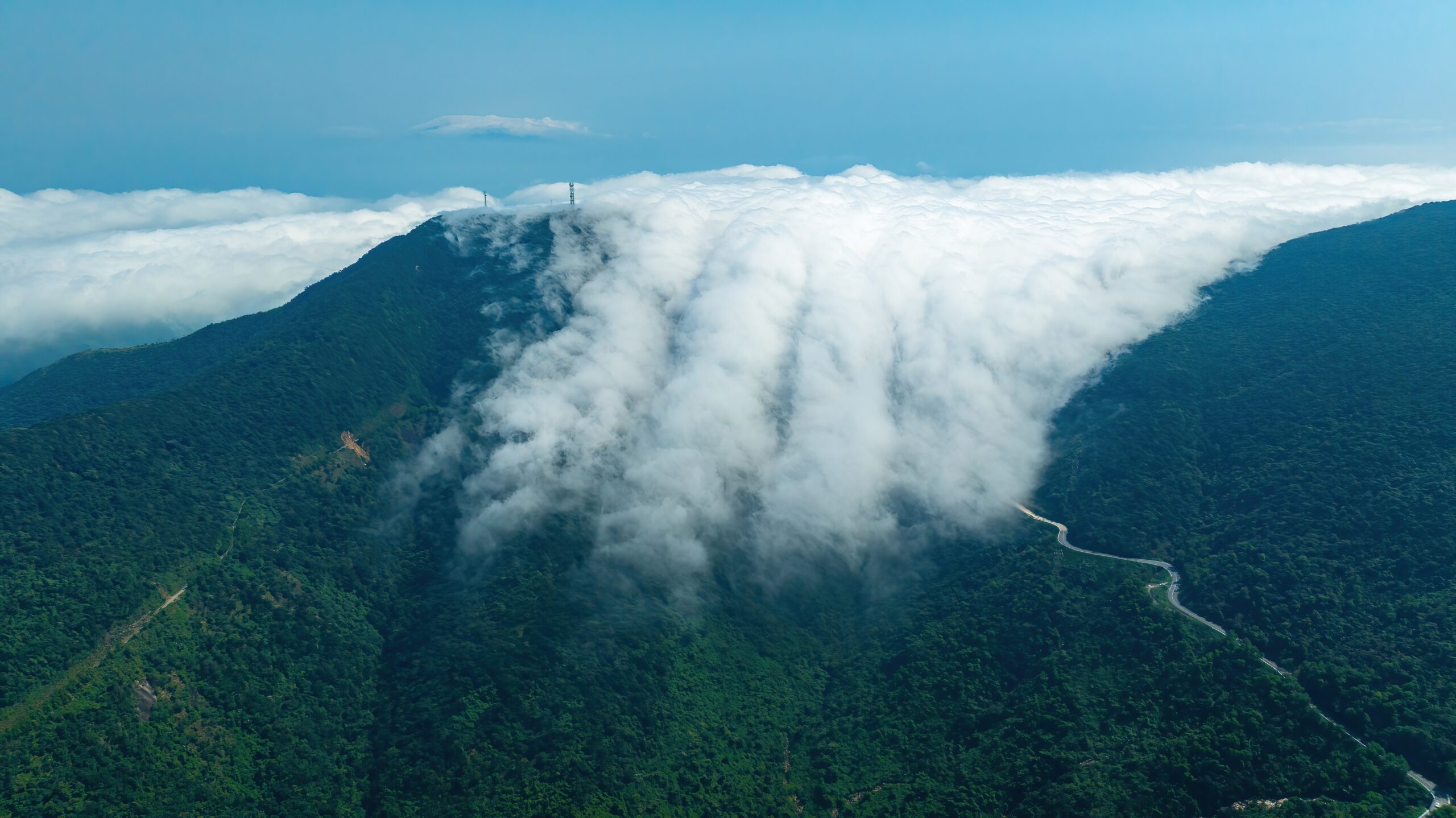 The scenic route was a siren song as the hungry abyss beside us sought to swallow any careless riders falling. We did not dare let our guard down until we reached the peak. Our courage was rewarded with a panoramic view of jungle-covered mountain ranges emerging from a sea of clouds, blurring the deep blue ocean in perfect harmony.