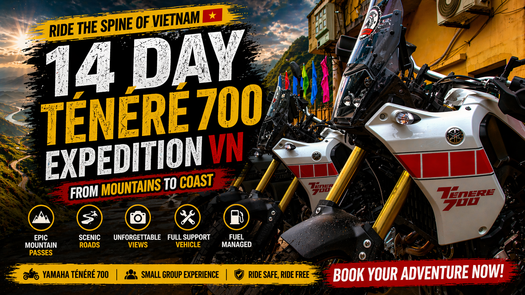 Ride the Spine of Vietnam – 14 Day Ténéré 700 Expedition from Mountains to Coast 0 out of 5 (0 Reviews) Big Bike Tours No Size Limit 14 Day(s) 13 Night(s) Explore